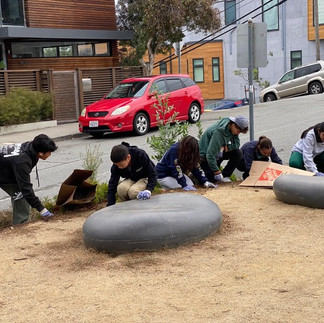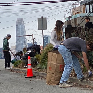 On a cool October morning, 18 Lick-Wilmerding HS students and two of their teachers, brought their enthusiasm, put on gloves, and really did a great job weeding, pruning and cleaning up our Skyline Terrace and the solar bollard lights throughout the median. We even had an extracurricular visitor in the midst of it all: a coyote! Huge thanks to all involved, including George Li of the SF Public Works for helping to coordinate and providing tools, etc…!